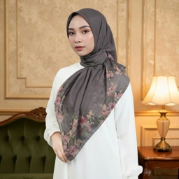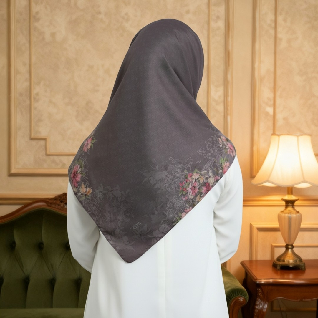Zoya - Nerine Print Scarf - Kerudung Hijab Segiempat Motif - Pouch Ziplock
