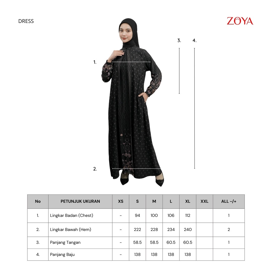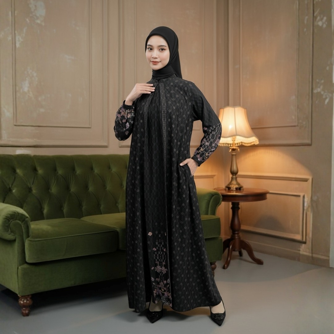 Zoya Filiz Dress Black - Gamis Muslim Wanita Busui Friendly - Bahan Poly Textured
