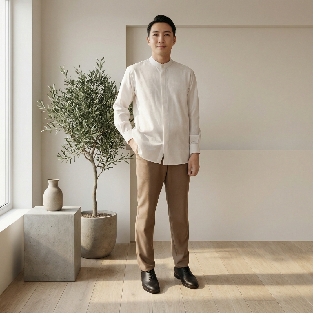 Karakteristik kain ringan, memiliki aksen embroidery dengan warna tone on tone, serat berongga sehingga mudah menyerap keringat dengan baik.