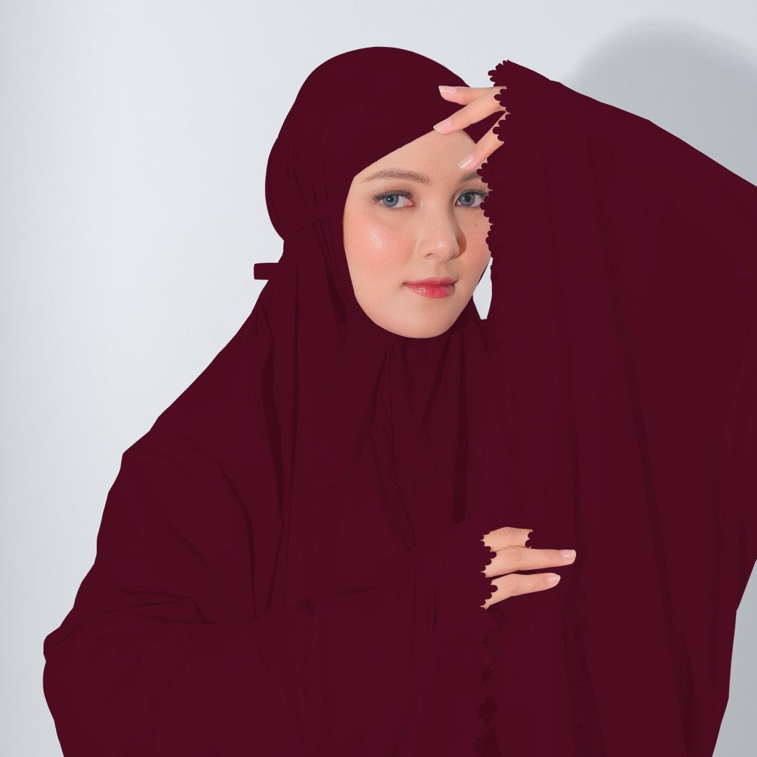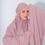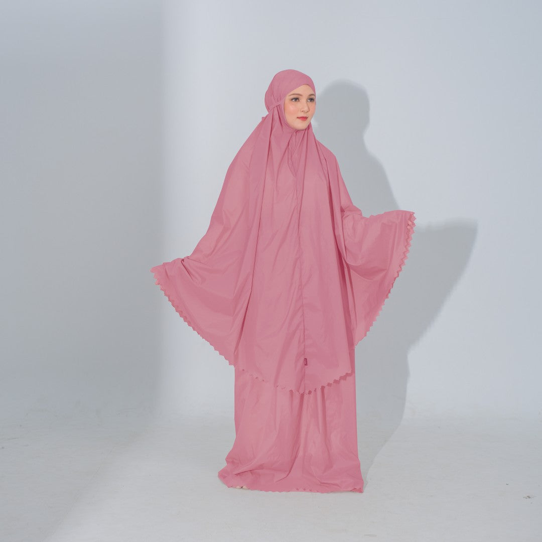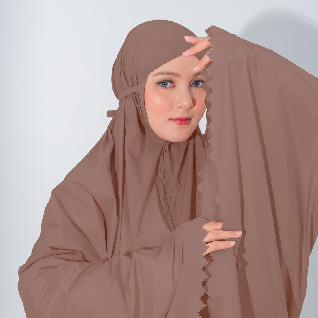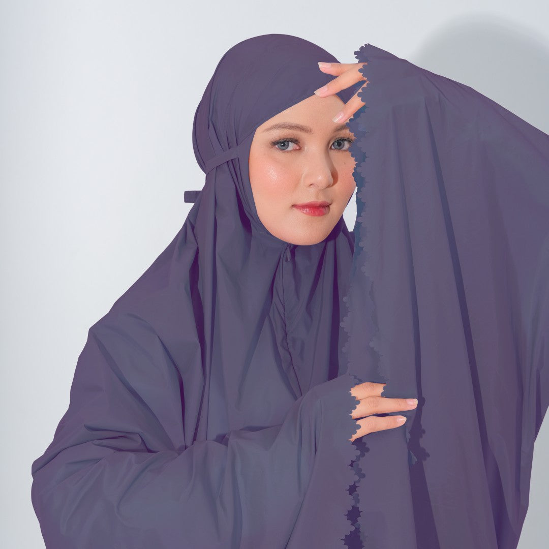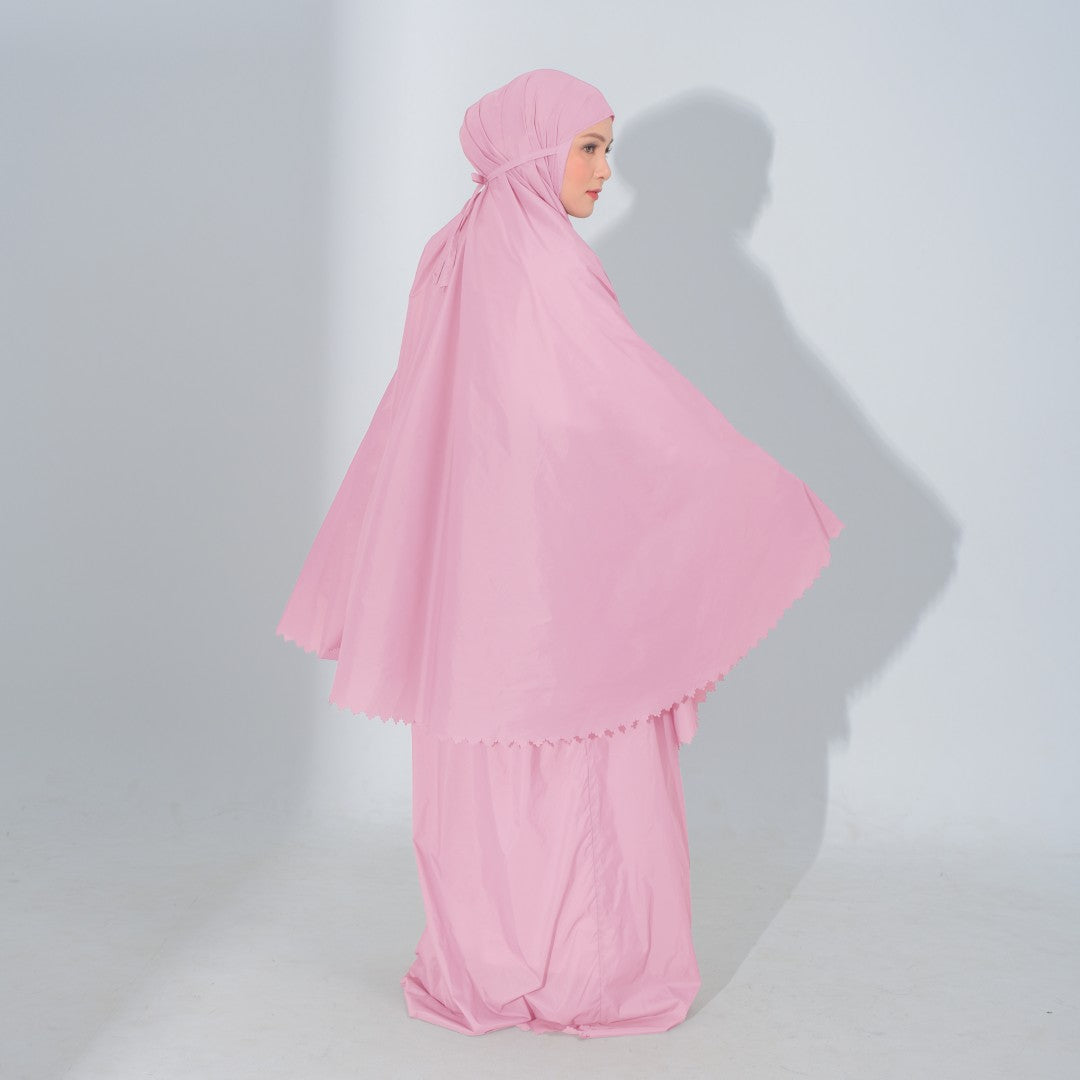Mukena dengan zipper bagian depan dan detail laser cut, dengan bahan yang ringan sehingga cocok untuk travel. DIlengkapi juga dengan tas travel size