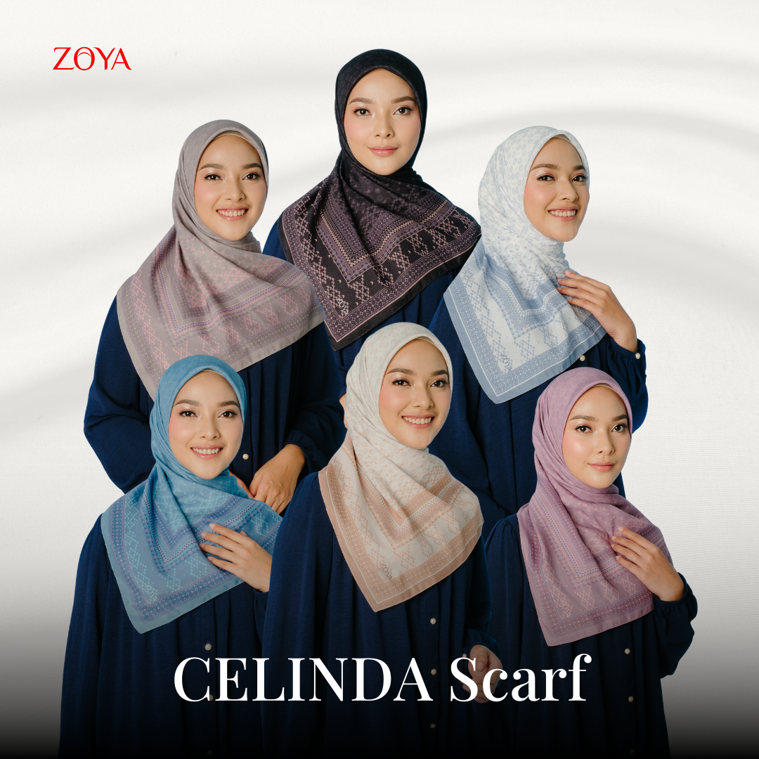 Zoya CELINDA Scarf - Kerudung Hijab Segiempat Motif With Pouch Ziplock - Bahan Poly Fine - Ukuran 110x110