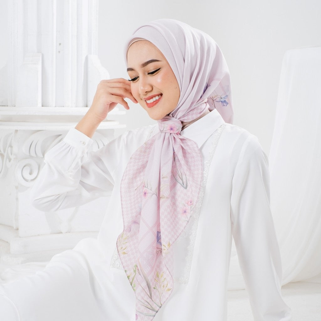 Zoya NUWARA Scarf - Kerudung Hijab Segiempat Motif With BOX - Bahan Nesla - Ukuran 115x115